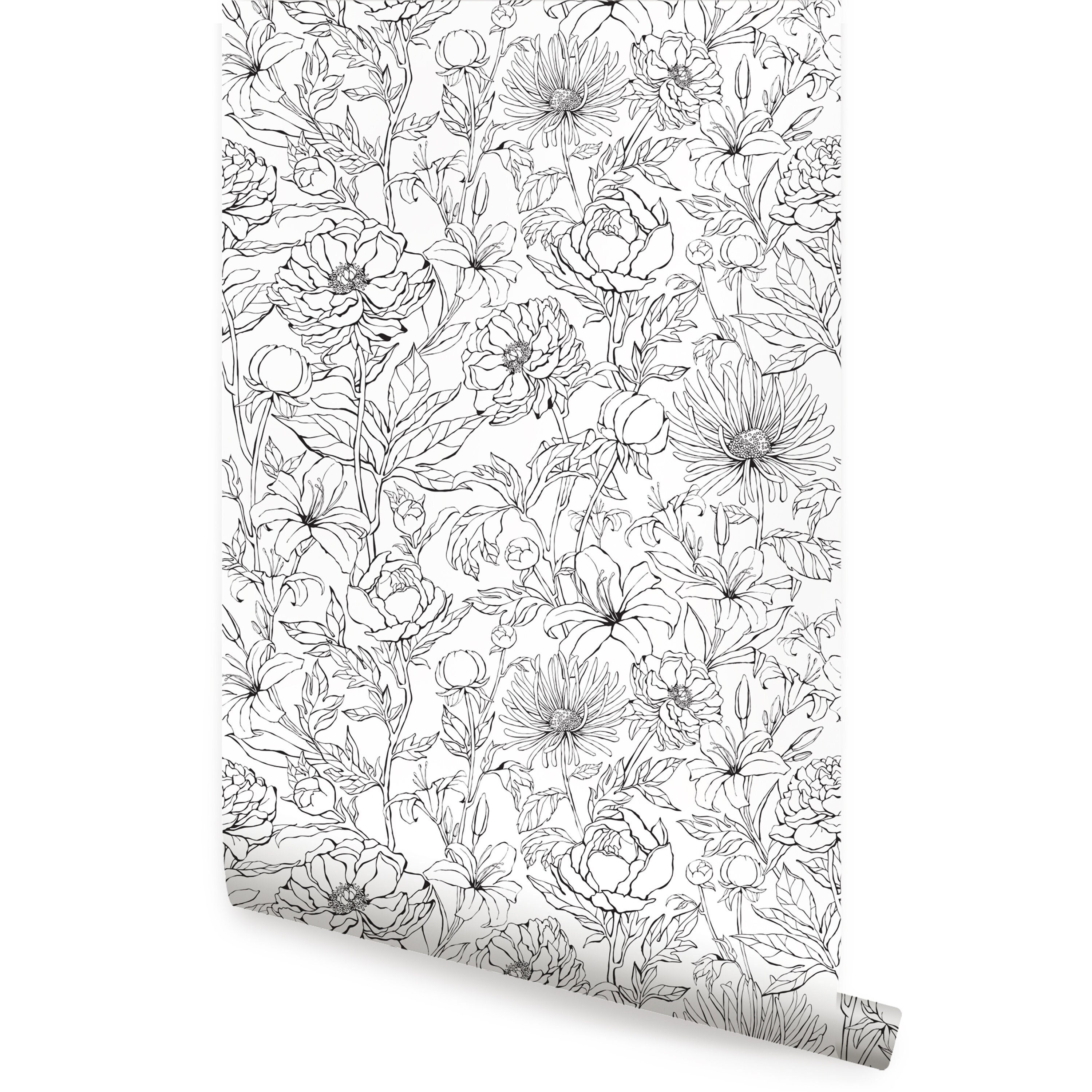 Buy Botanical Garden Hand Drawn Flowers Black Self Adhesive Online In India Etsy